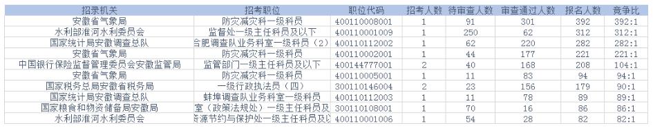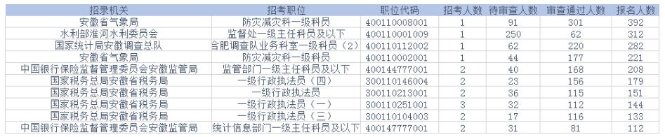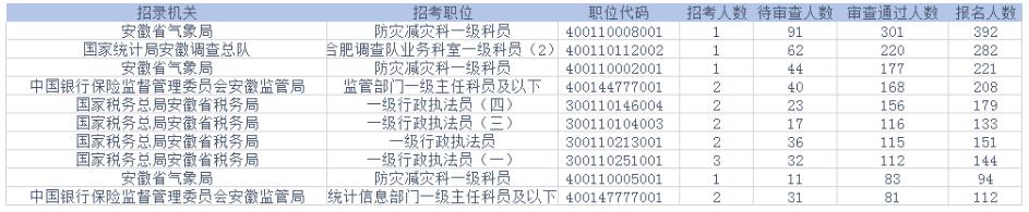 一、安徽地區(qū)報考人數(shù)最多的十大崗位