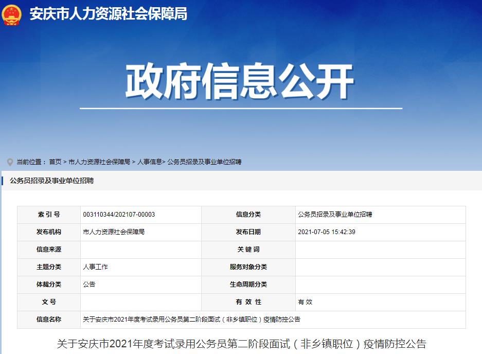 安慶市2021年度考試錄用公務(wù)員第二階段面試(非鄉(xiāng)鎮(zhèn)職位)將于7月9日-11日進(jìn)行。為切實(shí)保障廣大考生的生命安全和身體健康,確保本次面試安全有序進(jìn)行,現(xiàn)將面試期間疫情防控相關(guān)事項(xiàng)告知如下: