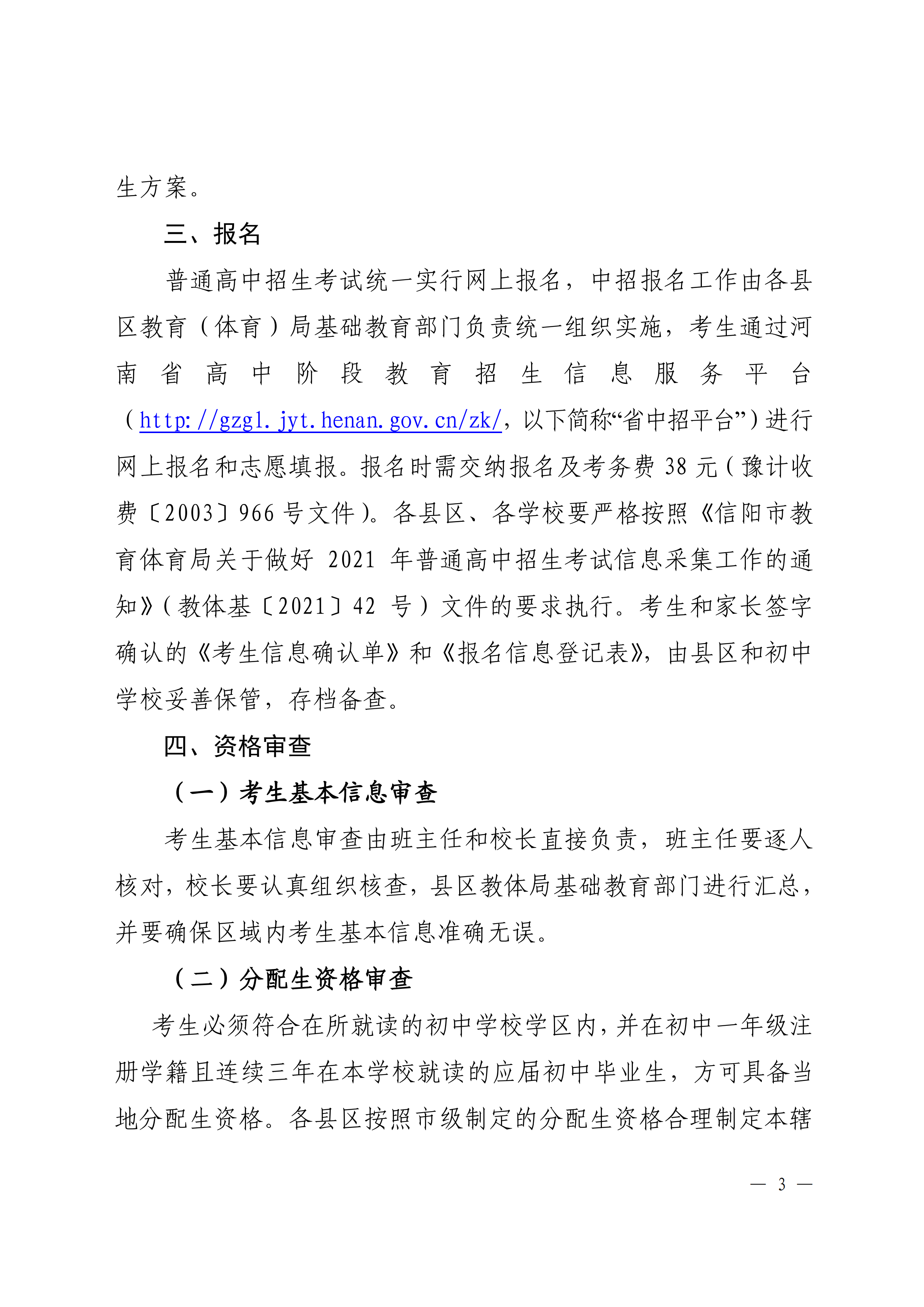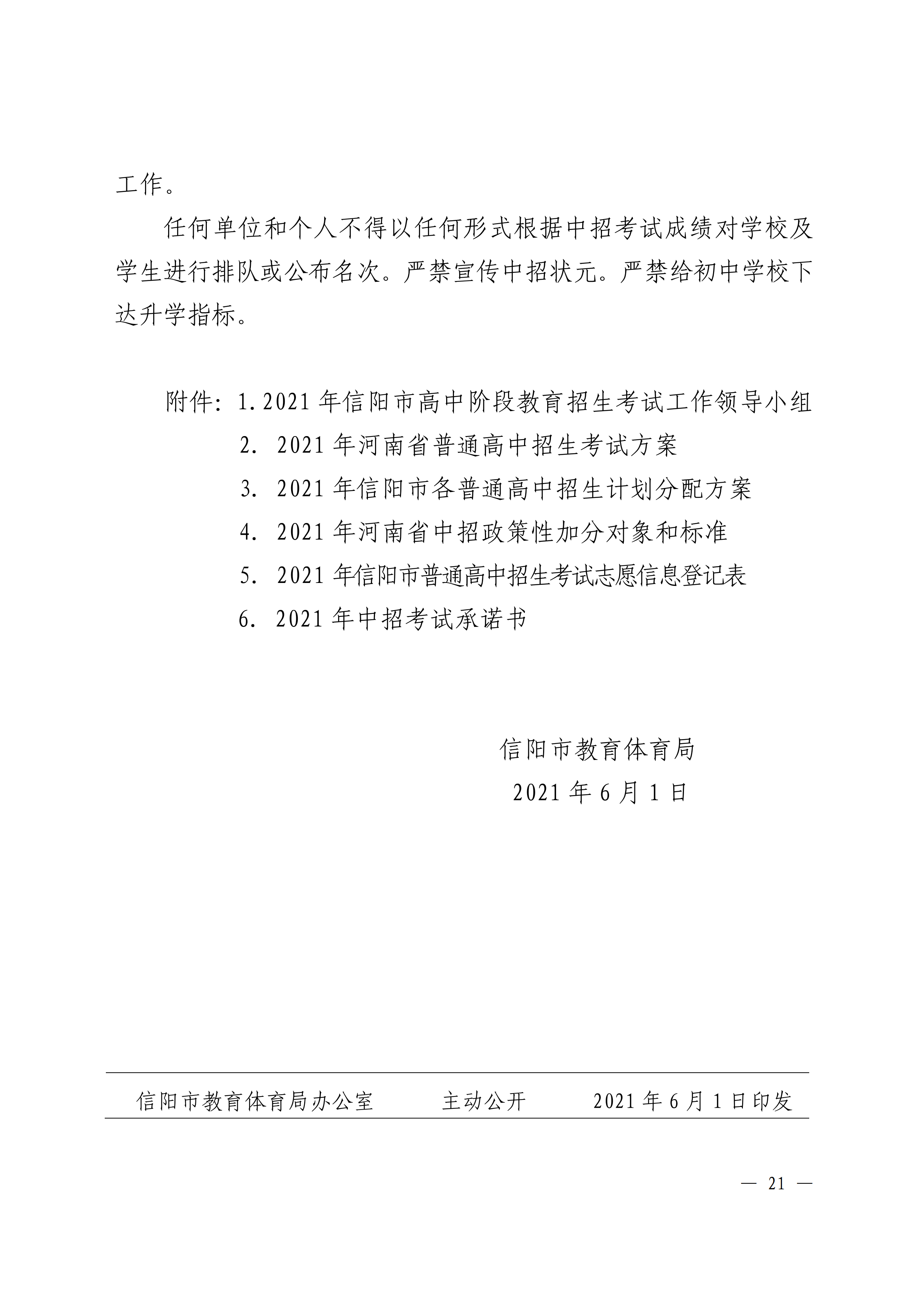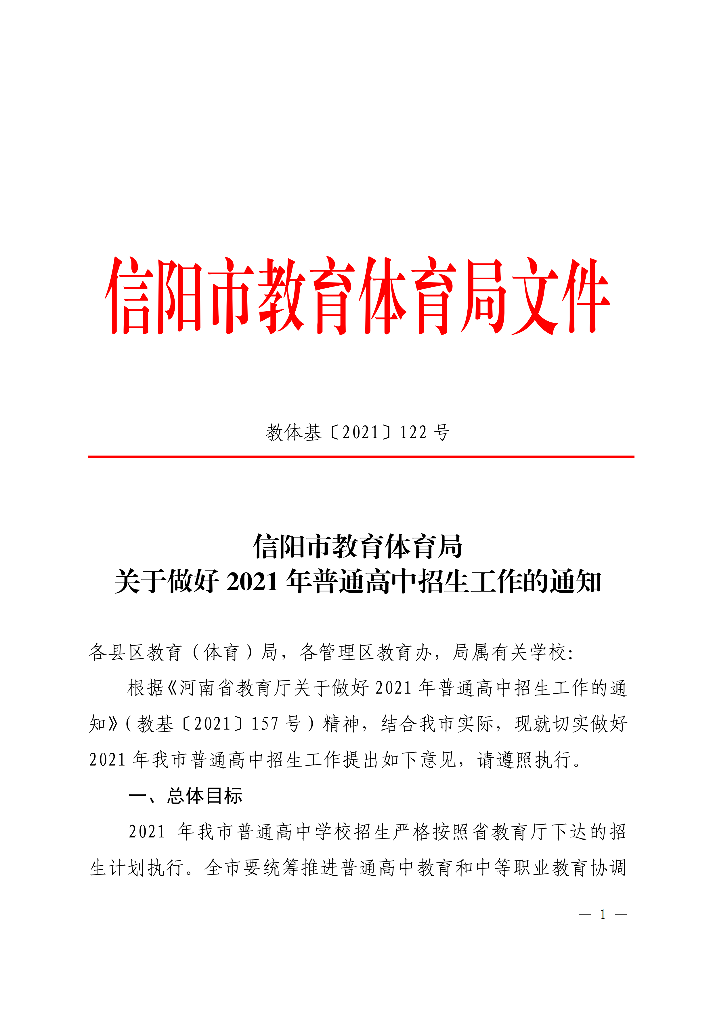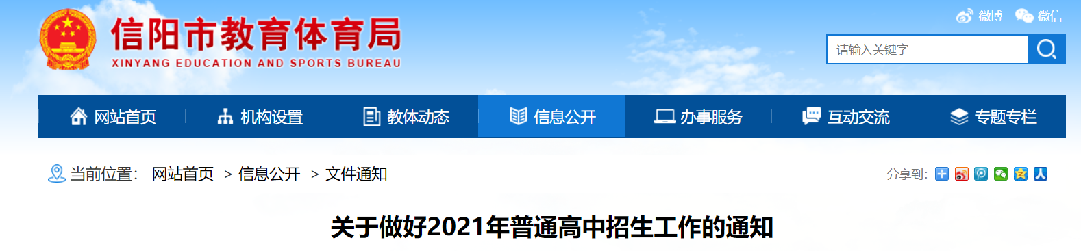 信陽(yáng)市體育教育局:2021年河南信陽(yáng)普通高中招生工作的通知