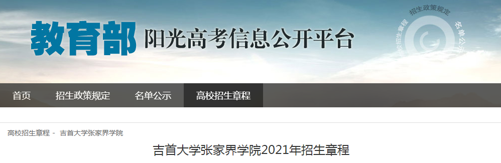 從教育部陽光高考信息公開平臺(tái)獲悉,湖南:吉首大學(xué)張家界學(xué)院2021年招生章程已公布,具體詳情如下: