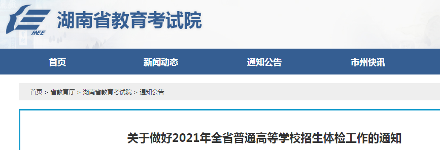 從湖南省教育考試院了解到,2021年湖南普通高等學校招生體檢工作的通知已經(jīng)發(fā)布,為方便考生了解情況,現(xiàn)將有關(guān)事宜通知如下: