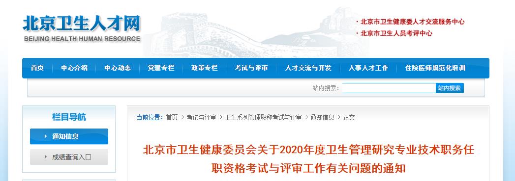 根據(jù)《北京市人力資源和社會保障局關(guān)于開展2020年度北京市職稱評價工作的通知》(京人社事業(yè)字〔2020〕1號)和《北京市人力資源和社會保障局關(guān)于啟動開展2020年度北京市專業(yè)技術(shù)資格評價工作的通知》(京人社事業(yè)字〔2020〕84號)精神,現(xiàn)將2020年度北京市衛(wèi)生管理研究專業(yè)技術(shù)職務(wù)任職資格考試與評審工作有關(guān)問題通知如下: