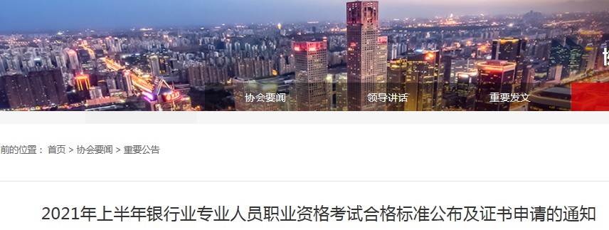 合格標(biāo)準(zhǔn)公布網(wǎng)站:中國銀行業(yè)協(xié)會