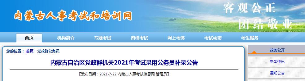 2021年內(nèi)蒙古自治區(qū)黨政群機(jī)關(guān)考試錄用公務(wù)員補(bǔ)錄公告已公布,為了方便廣大考生的查閱,下面為您詳細(xì)介紹一下本次公務(wù)員補(bǔ)錄工作的具體事宜,希望廣大考生及時(shí)關(guān)注,如有相關(guān)疑問(wèn),請(qǐng)關(guān)注公務(wù)員考試頻道為您實(shí)時(shí)做出的更新。