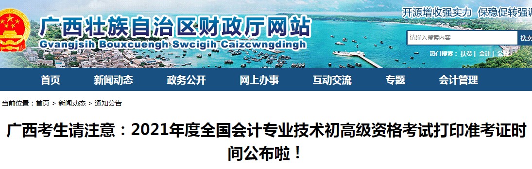 廣西財政廳發(fā)布“2021年廣西全國會計專業(yè)技術(shù)初高級資格考試打印準(zhǔn)考證時間公布”,2021年廣西初級會計職稱準(zhǔn)考證打印時間為2021年4月30日至5月7日24:00,屆時公布后請考生登錄全國會計資格評價網(wǎng)進(jìn)行打印,考試時間和地點(diǎn)以準(zhǔn)考證為準(zhǔn),具體初級會計準(zhǔn)考證打印通知詳情如下: