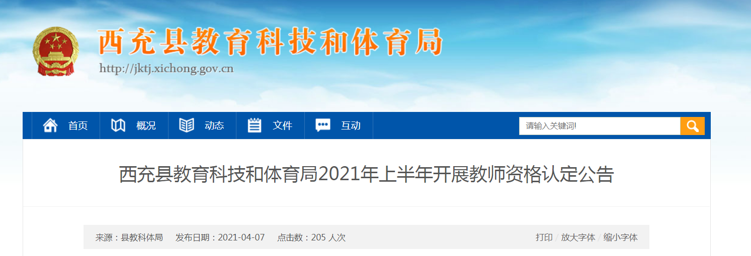 根據(jù)《中華人民共和國(guó)教師法》、《教師資格條例》、《〈教師資格條例〉實(shí)施辦法》、《四川省實(shí)施〈教師資格條例〉細(xì)則(試行)》及《南充市2021年上半年教師資格認(rèn)定公告》等有關(guān)規(guī)定,結(jié)合我縣實(shí)際,現(xiàn)就2021年上半年開展教師資格認(rèn)定工作的有關(guān)事宜公告如下: