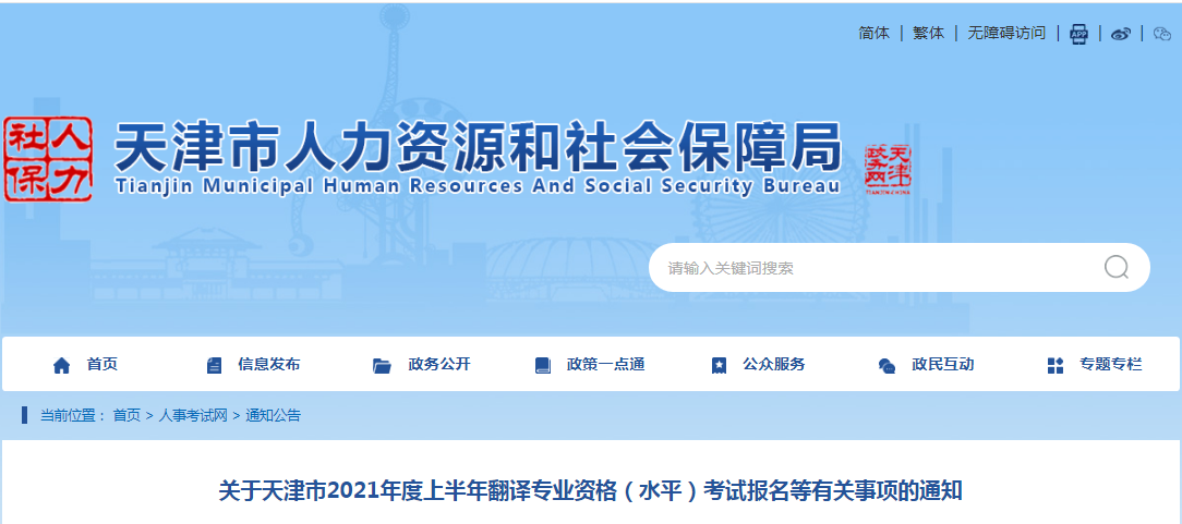 從天津市人力資源和社會(huì)保障局獲悉,2021年上半年天津市翻譯專業(yè)資格(水平)考試報(bào)名等有關(guān)事項(xiàng)的通知已公布,報(bào)名時(shí)間為4月6日-4月13日,考試時(shí)間為6月19-6月20日,準(zhǔn)考證打印時(shí)間為6月16日-18日,繳費(fèi)時(shí)間為4月15日-19日,具體詳情如下: