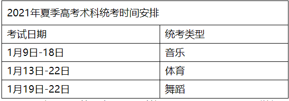 2021年夏季高考術(shù)科統(tǒng)考時間安排