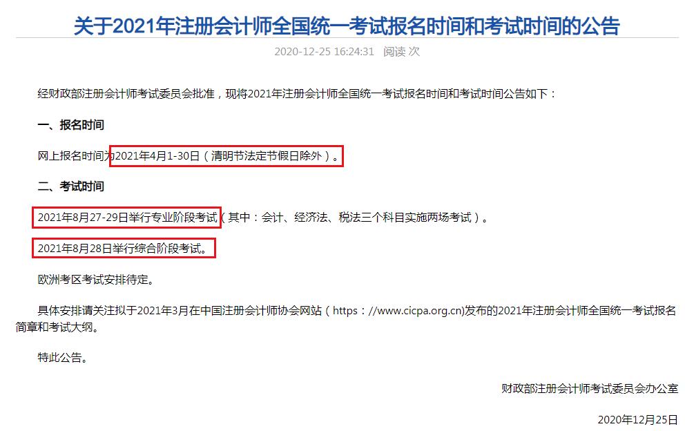 具體安排請(qǐng)關(guān)注擬于2021年3月在中國注冊(cè)會(huì)計(jì)師協(xié)會(huì)網(wǎng)站(https://www.cicpa.org.cn)發(fā)布的2021年注冊(cè)會(huì)計(jì)師全國統(tǒng)一考試報(bào)名簡(jiǎn)章和考試大綱。