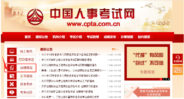 第二步:考生點擊左側(cè)的“成績查詢”欄目;