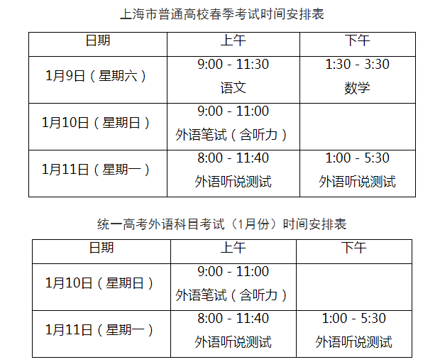 從上海市教育考試院了解到,2021年統(tǒng)一高考外語(yǔ)科目考試(1月份)和上海市普通高校春季考試(以下簡(jiǎn)稱(chēng)“兩項(xiàng)考試”)將于1月9日至11日進(jìn)行,現(xiàn)將有關(guān)事宜通知如下: