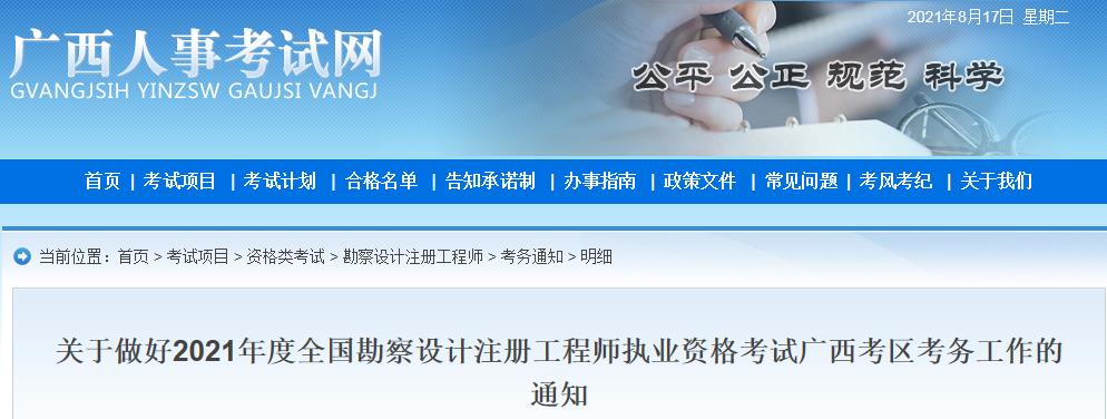 #】《2021年廣西勘察設(shè)計(jì)注冊(cè)工程師執(zhí)業(yè)資格考試報(bào)名通知》現(xiàn)已發(fā)布,2021年廣西注冊(cè)巖土工程師報(bào)名時(shí)間:8月17日-24日,考試時(shí)間:10月23日-24日,小編現(xiàn)將報(bào)考信息發(fā)布如下: