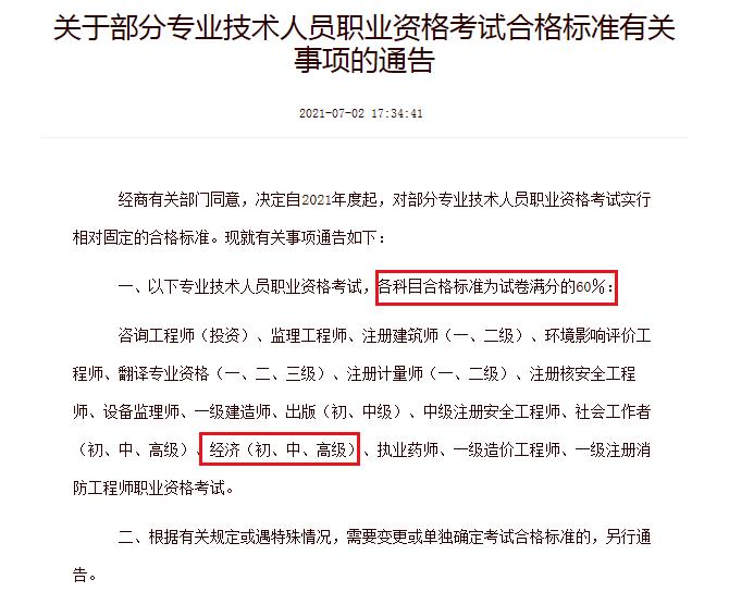 經(jīng)商有關(guān)部門同意,決定自2021年度起,對(duì)部分專業(yè)技術(shù)人員職業(yè)資格考試實(shí)行相對(duì)固定的合格標(biāo)準(zhǔn)。現(xiàn)就有關(guān)事項(xiàng)通告如下: