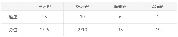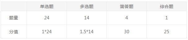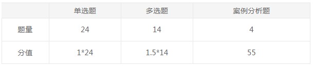 單選題24小題,每小題1分,共24分;多選題14小題,每小題1.5分,共21分;案例分析題4小題共55分,其中一道小題可以用中文或英文解答,如使用英文解答,須全部使用英文,答題正確的,增加5分,案例分析題得分為60分。