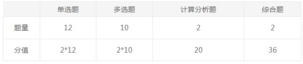 單選題12小題,每題2分,共24分;多選題10小題,每題2分,共20分;計(jì)算分析題2小題,每題10分,共20分,其中一道小題可以用中文或英文解答,如使用英文解答,須全部使用英文,答題正確的,增加5分,計(jì)算題得分為25分;綜合題2題36分。