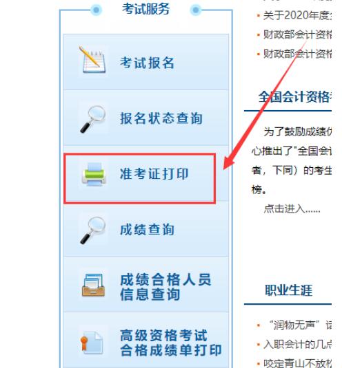 二、首頁(yè)左側(cè)選擇【準(zhǔn)考證打印】
