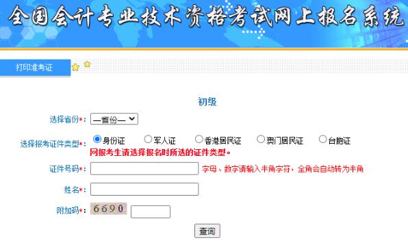 四、進(jìn)入全國(guó)會(huì)計(jì)專業(yè)技術(shù)資格考試網(wǎng)上報(bào)名系統(tǒng);選擇省份和證件類型(身份證、軍官證、護(hù)照、港澳居民證、臺(tái)胞證等),并錄入證件號(hào)碼和附加碼。