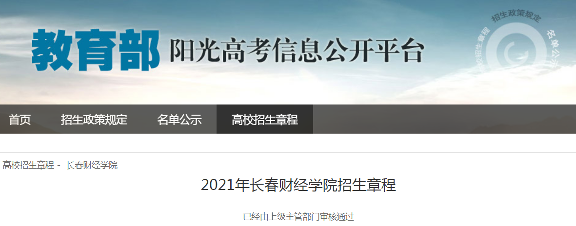 從教育部陽光高考信息公開平臺(tái)獲悉,2021年長春財(cái)經(jīng)學(xué)院招生章程已公布,具體詳情如下: