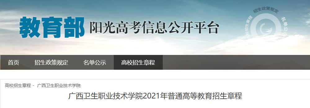 從教育部陽光高考信息公開平臺(tái)獲悉,廣西衛(wèi)生職業(yè)技術(shù)學(xué)院2021年普通高等教育招生章程已公布,具體詳情如下:
