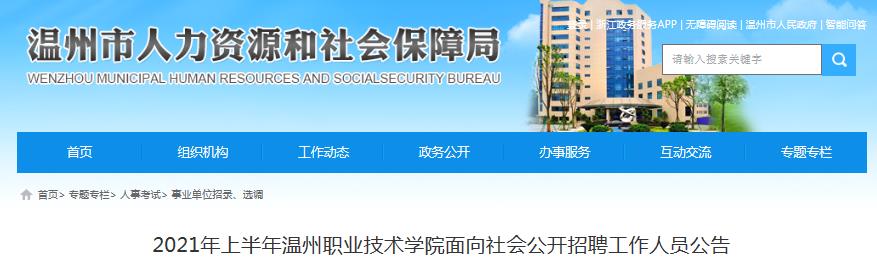 8.招聘相關事宜將在溫州市人力資源和社會保障局網(wǎng)站“人事考試”專欄及溫州職業(yè)技術學院網(wǎng)站上公布,請及時登錄查詢。