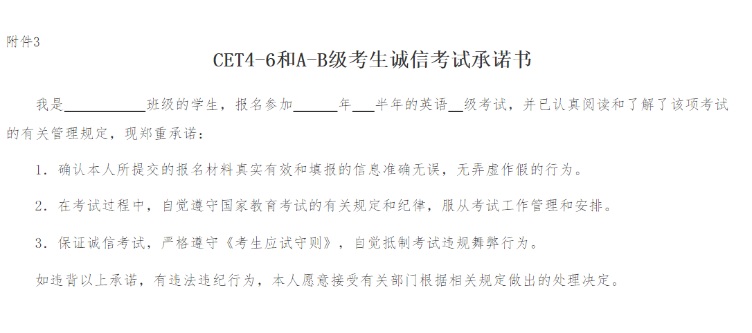 2.報名時須向報名點提交本人真實有效的學生證、身份證和相關信息表格(報考CET6的考生還需提交CET4成績單)等報名材料。