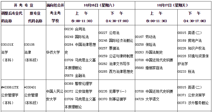 2.此表包含面向社會(huì)和開考體制改革試點(diǎn)所有專業(yè)理論課程考試