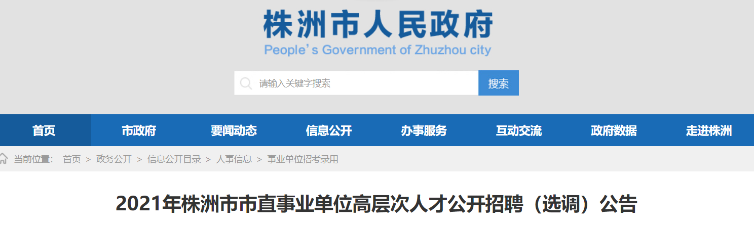 高層次人才公開招聘(選調(diào))信息通過株洲市人力資源和社會保障局面向社會公開發(fā)布。