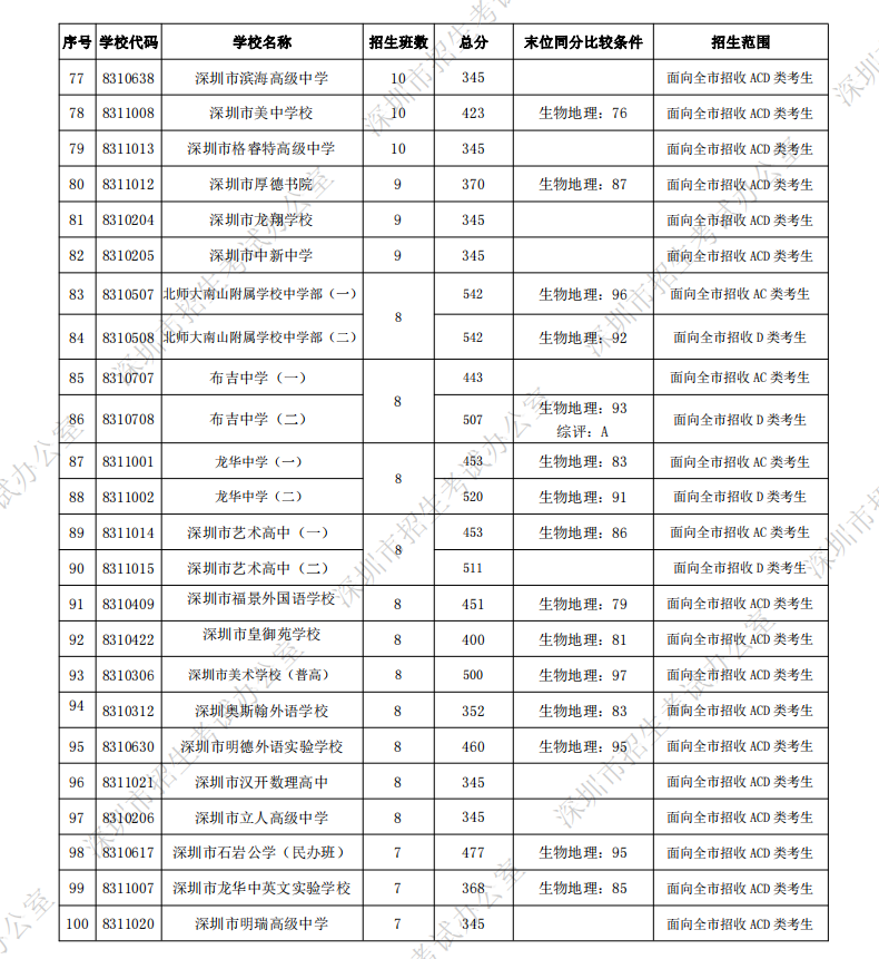 從深圳市招生考試辦公室 了解到,2021年廣東深圳高中階段學(xué)校第一批錄取標準公布,2021年深圳高中階段學(xué)校錄取仍按照“分數(shù)優(yōu)先,遵循志愿順序”的原則投檔。各學(xué)校招收的考生,均按1:1的比例出檔。
