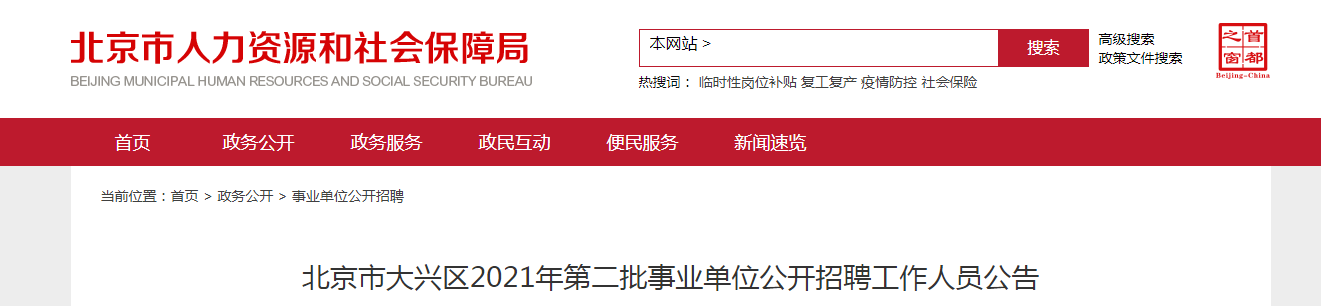 (三)公開招聘過程中,筆試及面試工作安排、考試成績等相關(guān)信息均會通過網(wǎng)站進行公示,請考生務(wù)必隨時關(guān)注北京市大興區(qū)人民政府網(wǎng)站發(fā)布的相關(guān)公告,并按公告要求參加招聘。