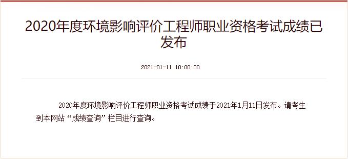 2020年海南環(huán)境影響評價(jià)師考試成績現(xiàn)已公布!從中國人事考試網(wǎng)獲悉,2020年海南環(huán)境影響評價(jià)師成績查詢時(shí)間從1月11日起,考生可通過查分在線查詢考試成績,小編在這里預(yù)祝大家順利取證!