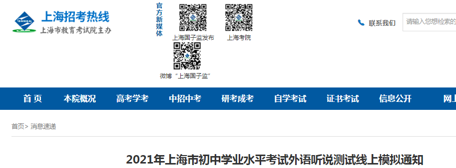 從上海市教育考試院了解到,2021年上海初中學(xué)業(yè)水平考試外語(yǔ)聽(tīng)說(shuō)測(cè)試線上模擬的通知已經(jīng)發(fā)布,為方便考生了解情況,現(xiàn)將有關(guān)事宜通知如下:
