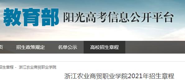 從教育部陽光高考信息公開平臺獲悉,浙江農(nóng)業(yè)商貿(mào)職業(yè)學(xué)院2021年招生章程已公布,具體詳情如下:
