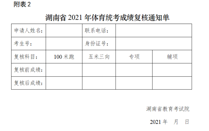 2.湖南省2021年體育統(tǒng)考成績復(fù)核通知單