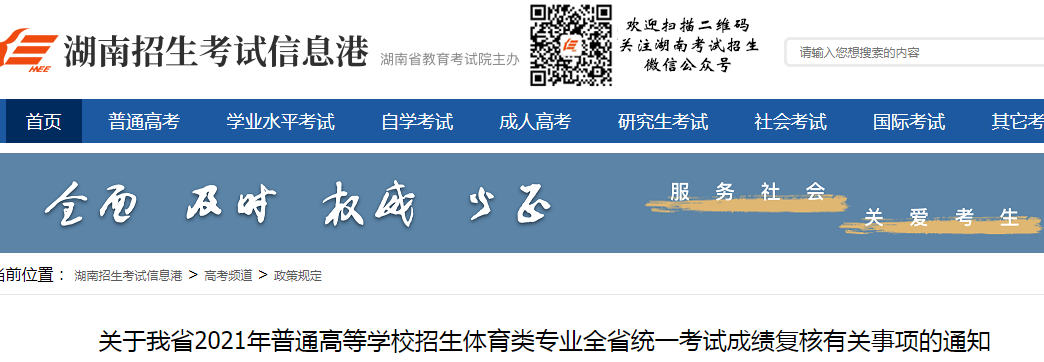 從湖南省教育考試院了解到,2021年湖南普通高等學(xué)校招生體育類專業(yè)全省統(tǒng)一考試成績復(fù)核通知已發(fā)布,為方便考生了解情況,現(xiàn)將有關(guān)事宜通知如下: