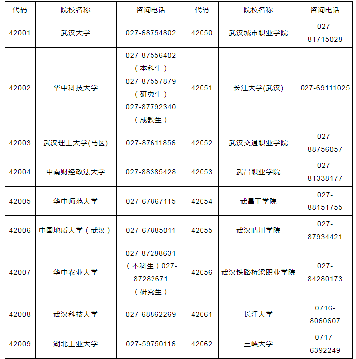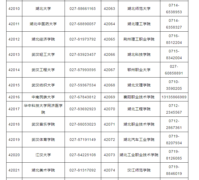 武漢市:華中師范大學(xué)、中南民族大學(xué)、湖北工業(yè)大學(xué)、武漢紡織大學(xué)、江漢大學(xué)、海軍工程大學(xué)、湖北第二師范學(xué)院、武漢工商學(xué)院、武漢華夏理工學(xué)院;