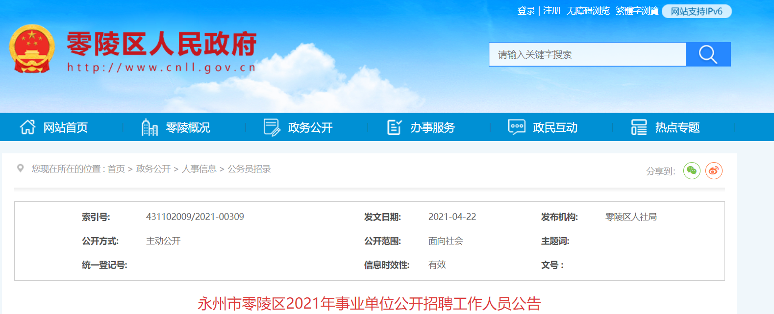在永州市人力資源社會(huì)保障網(wǎng)、永州人事考試網(wǎng)、零陵區(qū)新聞網(wǎng)等網(wǎng)站發(fā)布招聘公告、公布公開招聘各個(gè)環(huán)節(jié)的相關(guān)信息、公示擬聘用人員名單等。