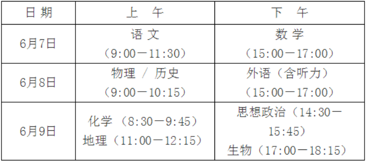 注:全國統(tǒng)一考試科目時間安排以教育部公布的為準,如有調(diào)整,湖南省學業(yè)水平選擇性考試科目的考試時間安排相應調(diào)整。