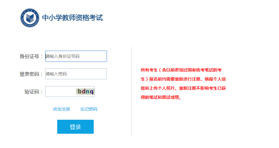 注意:考生在報(bào)名待審核階段可對本人的報(bào)名信息進(jìn)行修改,后臺審核一經(jīng)通過,考生信息不得更改??忌缤浢艽a可通過報(bào)名系統(tǒng)提示操作,報(bào)名系統(tǒng)將把新密碼通過短信發(fā)送到考生報(bào)名時(shí)填報(bào)的手機(jī)上。手機(jī)短信為考生重新獲取密碼的重要途徑,在參加中小學(xué)教師資格考試期間,請考生不要更換手機(jī)號碼。