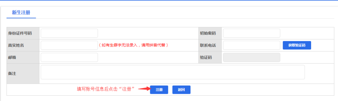 第一步:注冊(cè)(已注冊(cè)或老考生請(qǐng)直接查看第二步),考生在本系統(tǒng)注冊(cè)賬號(hào),用于登錄本系統(tǒng)。