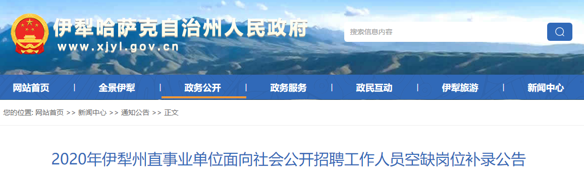 根據(jù)《2020年伊犁州直事業(yè)單位面向社會(huì)公開招聘工作人員簡(jiǎn)章》有關(guān)規(guī)定,按照疫情防控常態(tài)化要求,為進(jìn)一步做好2020年301個(gè)空缺崗位招聘386名工作人員補(bǔ)錄工作,現(xiàn)將具體事宜公告如下。