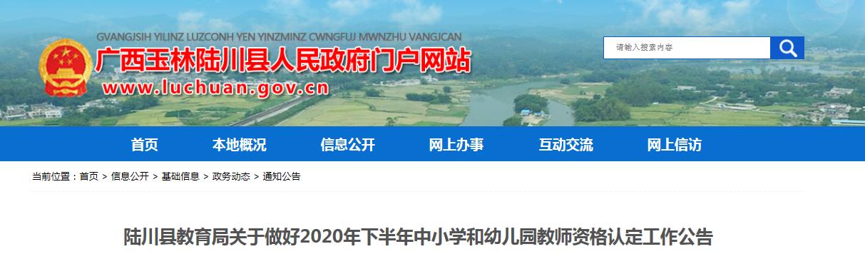 從廣西玉林陸川縣人民政府獲悉,2020年下半年廣西玉林陸川縣中小學(xué)和幼兒園教師資格認(rèn)定工作公告已公布,報名時間為11月5日至12月4日,具體詳情如下:
