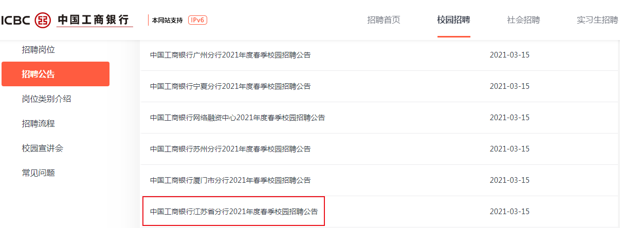 【點(diǎn)擊報(bào)名:中國工商銀行江蘇省分行2021年春季校園招聘報(bào)名入口】