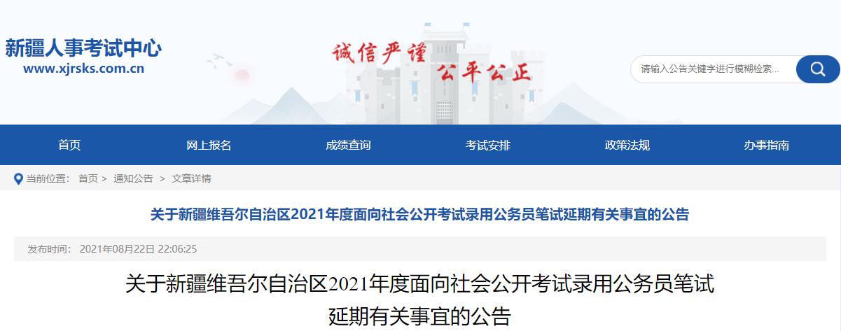 從新疆人事考試中心網(wǎng)了解到,2021年新疆公務(wù)員考試將延期舉行,具體時間另行通知,詳情如下: