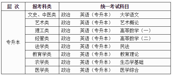 2.專升本各科類統(tǒng)一考試科目一覽表。