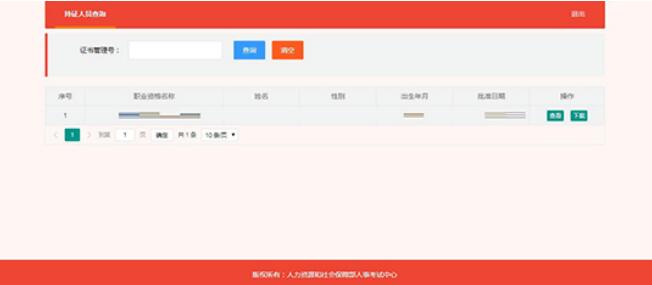 同意服務(wù)須知后,進入持證人員查詢頁面,根據(jù)注冊信息,查詢已開通證書查詢的考試中,當(dāng)前用戶所獲取的證書信息。