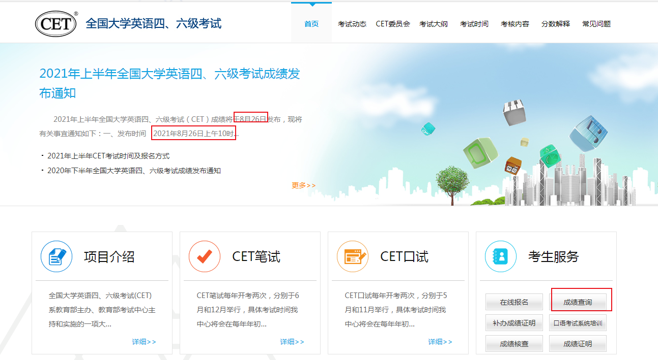 從中國(guó)教育考試網(wǎng)發(fā)布的《2021年上半年全國(guó)大學(xué)英語(yǔ)四、六級(jí)考試成績(jī)發(fā)布通知》得知,2021年6月云南英語(yǔ)六級(jí)成績(jī)查詢時(shí)間及查分入口已公布,8月26日上午10時(shí)可查分,具體詳情如下: