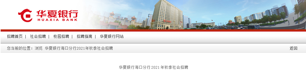 華夏銀行海南??诜中?021年秋季社會招聘6人,報名時間:2021年9月15日截止,現(xiàn)將招聘公告原文發(fā)布如下: