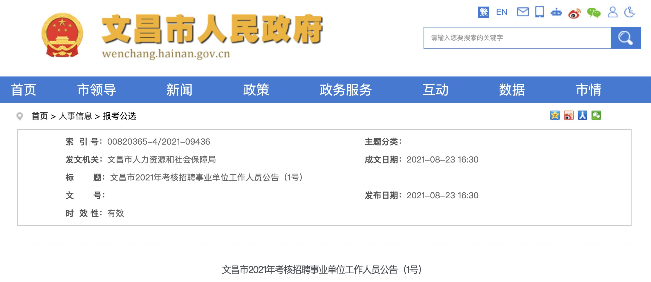 6.考生報(bào)考后應(yīng)及時(shí)登錄文昌市人民政府網(wǎng)站了解招聘工作進(jìn)展情況和有關(guān)事項(xiàng)的公告,并保持報(bào)名時(shí)登記的聯(lián)系方式暢通。