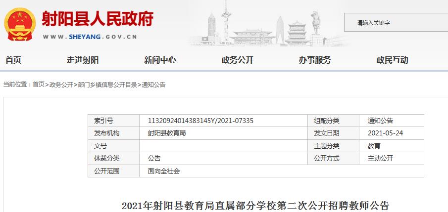 2021江蘇鹽城市射陽縣教育局直屬部分學(xué)校第二次招聘教師40人,報(bào)名時(shí)間:2021年5月31日-6月1日,現(xiàn)將招聘公告原文發(fā)布如下: