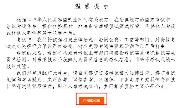 3、仔細閱讀《溫馨提示》,選擇【已閱讀繼續(xù)】,并點擊進入。